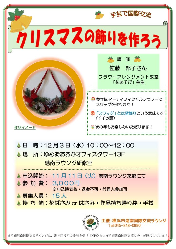 🎄申込開始: 11月11日(火)港南ラウンジ来館にて