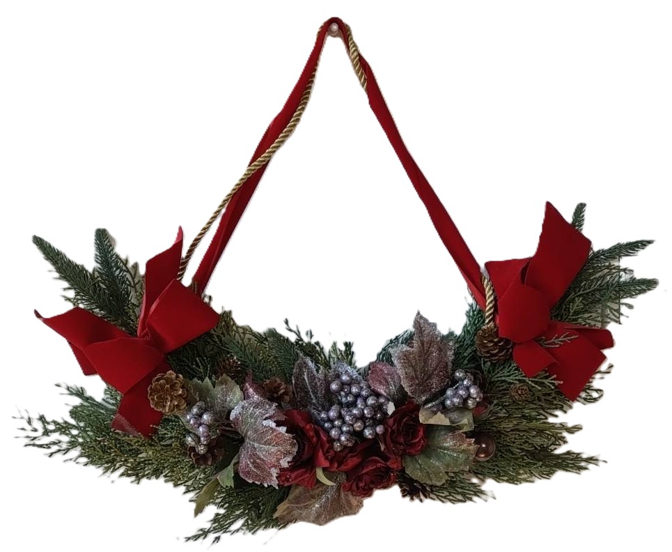 今年はアーティフィシャルフラワーでスワッグを作ります!「スワッグ」とは壁飾りという意味です(ドイツ語)。