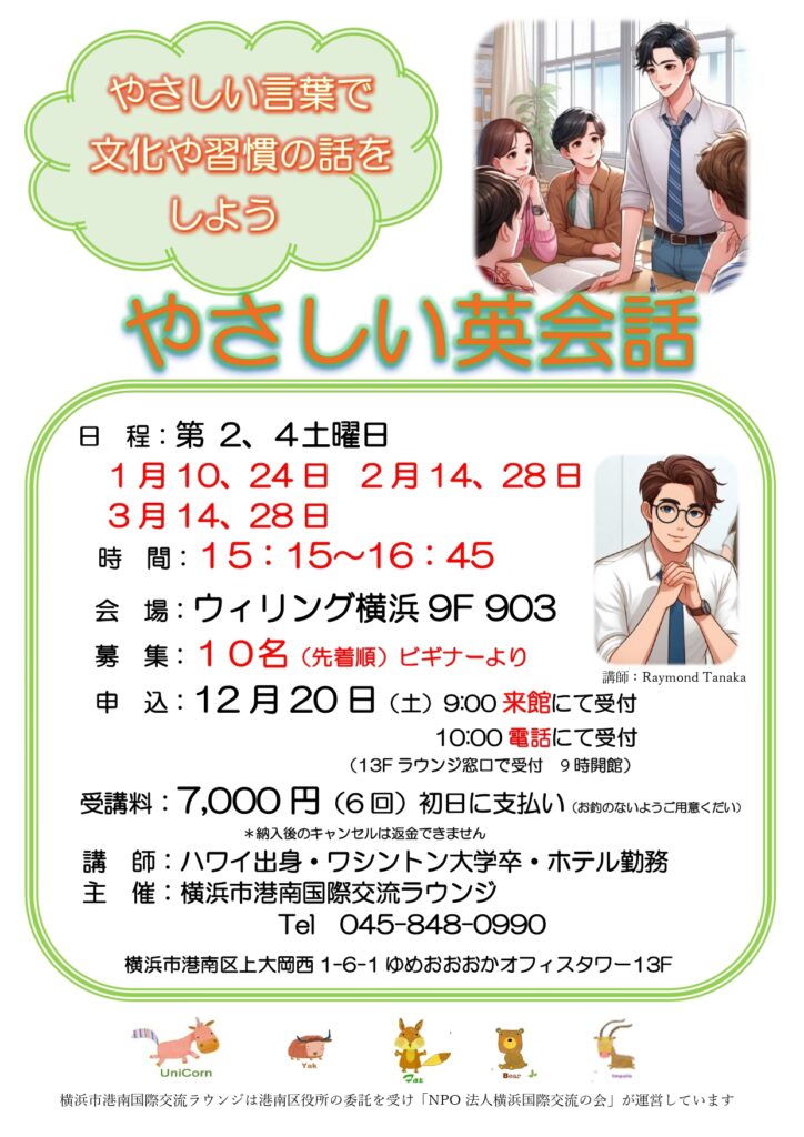 | 主 催 | 横浜市港南国際交流ラウンジ<a href="http://Tel 045-848-0990"> Tel 045-848-0990 横浜市港南区上大岡西1-6-1ゆめおおおかオフィスタワー13階 |