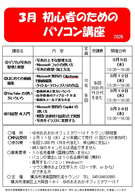 3月 初心者のためのパソコン講座
